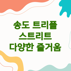 트리플스트리트는 송도 지역의 대표적인 관광 및 여가 활동 장소로, 다양한 먹거리와 놀거리, 쇼핑 시설을 갖추고 있어 가족 단위 나들이나 데이트 장소로 인기가 높습니다.
