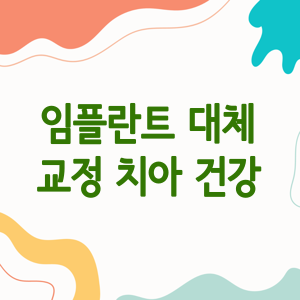 이번 글을 통해 임플란트 대체 교정에 대해 알아보셨습니다. 이 방법이 여러분의 치아 건강을 지키는 데 도움이 되었길 바랍니다. 앞으로 치아 상실 문제를 해결할 때 임플란트 외에도 다양한 대안을 고려해볼 수 있겠죠?