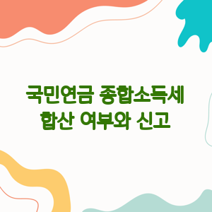 국민연금 소득은 종합소득세 신고 시 다른 소득과 합산해야 하는 경우가 있습니다. 구체적으로 살펴보면 다음과 같습니다.