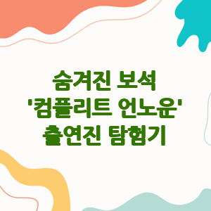 이 출연진들이 모여 만들어낼 시너지 효과가 어떨지 궁금해지네요. 과연 이들이 '컴플리트 언노운'이라는 작품을 통해 어떤 새로운 모습을 보여줄지 기대해 봅시다.