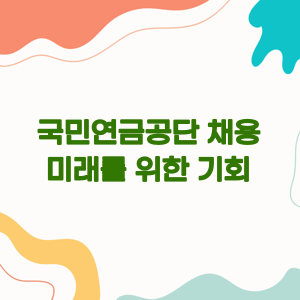 국민연금공단 채용 기회를 어떻게 활용할 계획이신가요? 이 기회를 통해 어떤 미래를 설계하고 계신지 궁금합니다. 국민연금공단에서 일하며 어떤 보람과 성취감을 느낄 수 있을지 생각해 보세요.